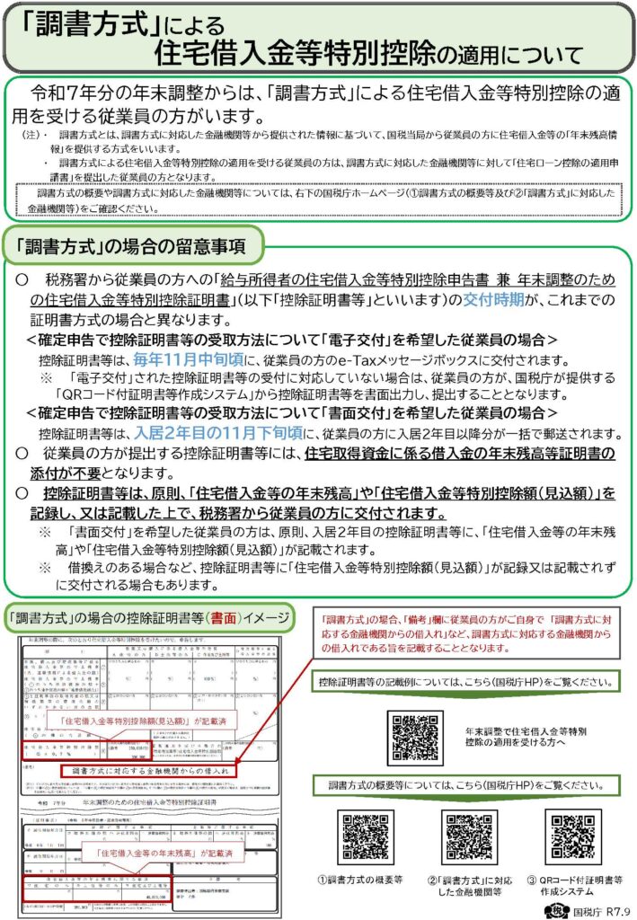 令和7年分の年末調整では、住宅ローン控除について「証明書方式」と「調書方式」が混在する可能性があります。